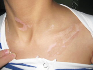 2016-01-01 08:48:45 患者小片状浅白斑,后扩大、增多,现胸部、后背、腿部均见片状浅、瓷白斑,外院治疗效果不 好,白斑继续扩散,今日特来我院就诊。...